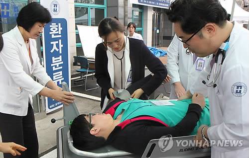 재난 모의훈련하는 의료진