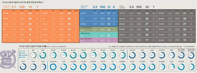 SKY도 '슬픈 인문계' <상> 취업 절반도 못 한다서울대 인문계 30명 취업 도전기취업 못한 12명 토익 평균 950점대기업 취업 12명보다 18점 높아스펙보다 직무 관련 강점이 중요고고미술사학과는 100% 취업률
