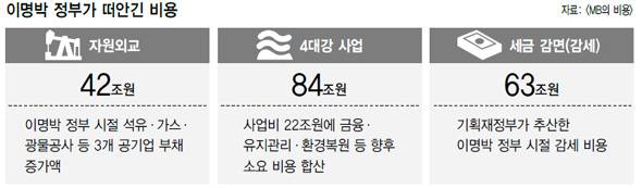 '친기업'을 표방한 이명박 정부가 기업이 내야 할 법인세율을 낮추는 등 63조원의 감세 정책을 편 것도 엠비가 남긴 비용으로 계산됐다. 강병구 인하대 교수와 유 교수는 책에 실린 대담에서 엠비가 선전한 '투자를 통한 고용창출 효과'는 없었다고 못 박았다.