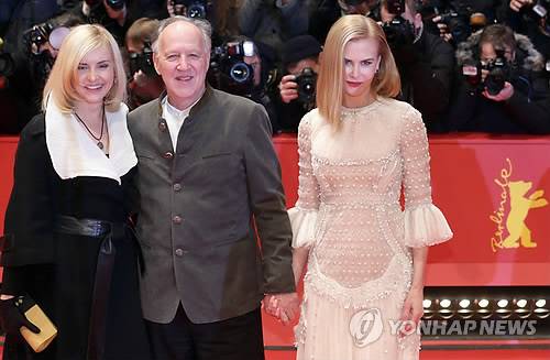 epa04606299 Australian actress Nicole Kidman (R), German director Werner Herzog (C) and his wife Lena arrive for the screening of 'Queen of the Desert' during the 65th annual Berlin Film Festival, in Berlin, Germany, 06 February 2015. The movie is presented in the Official Competition of the Berlinale, which runs from 05 to 15 February 2015. EPA/MICHAEL KAPPELER