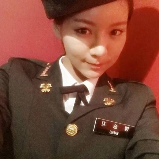 공개된 사진 속에는 '진짜 사나이' 여군 특집 당시 부사관 복장을 한 맹승지가 셀카를 찍고 있는 모습이 담겨 있다. 뽀얀 피부와 함께 귀여운 외모가 눈길을 끌었다.