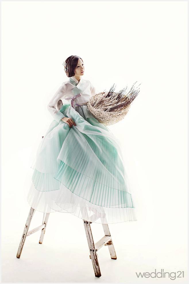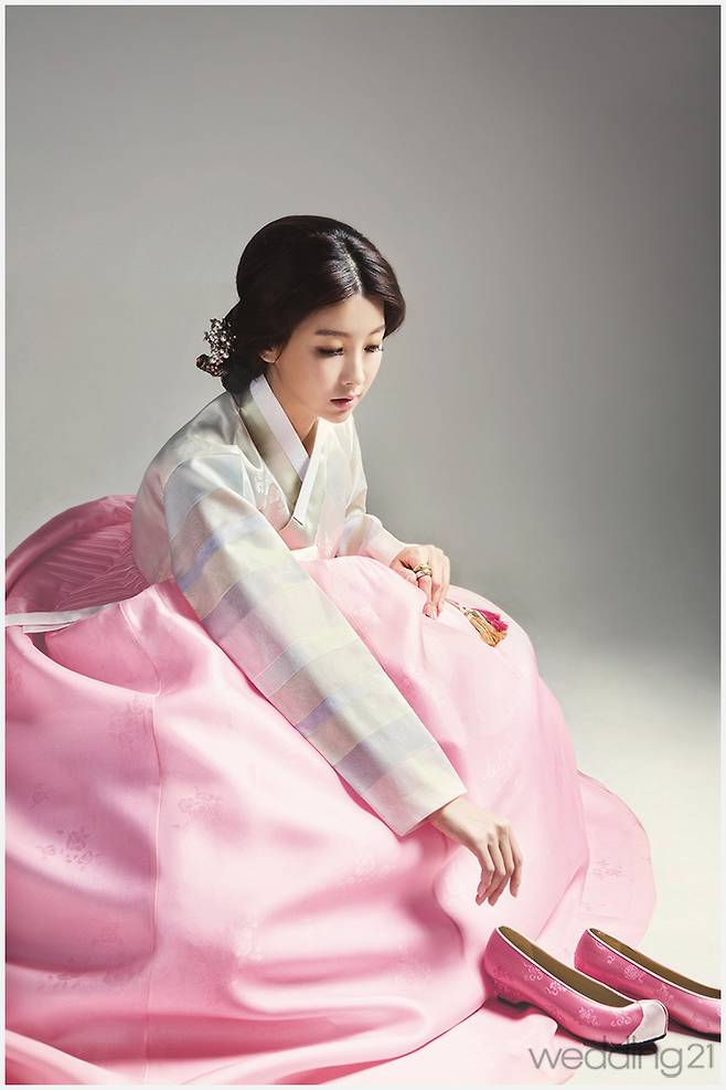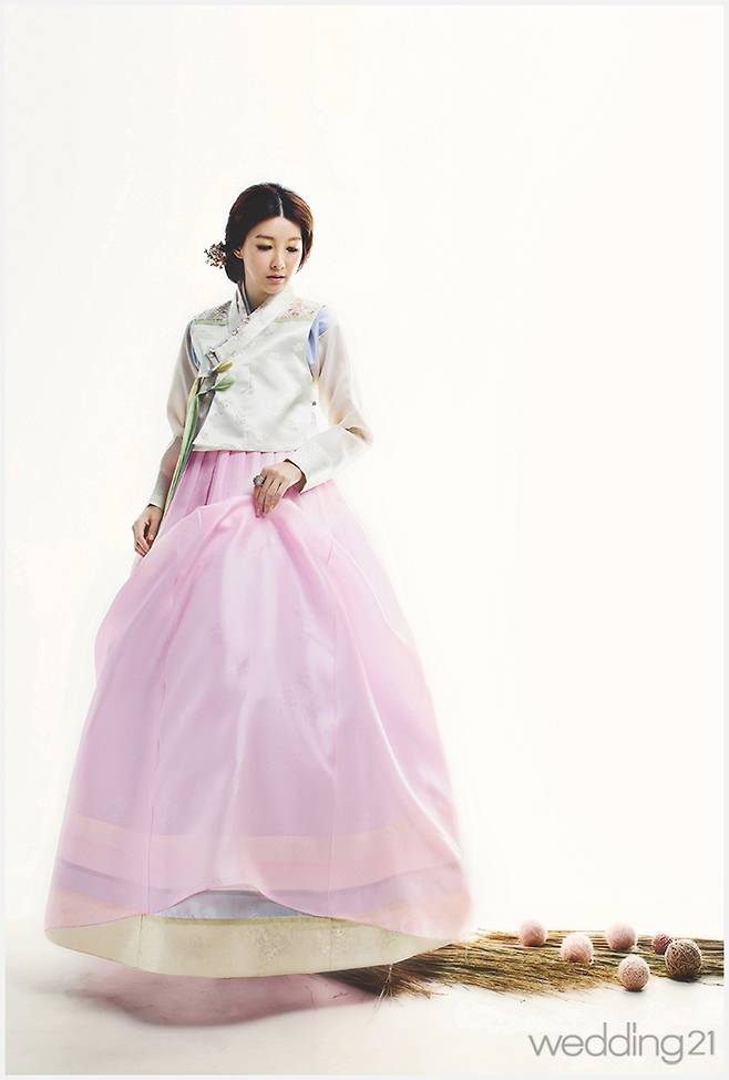 [월간 웨딩21 편집팀]봄으로 물든 우리 한복, 쪽빛 하늘과 복사꽃 향기가 우리 옷에 스며들다.designed by 예단박선희한복