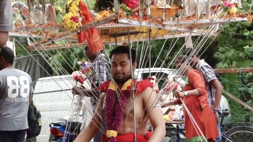 고행에 꼭 필요한 준비물 중 하나인 쇠로 만든 각양각색의 피어싱은 보는 이들을 경악하게 만드는데, 순례자들의 등과 팔, 얼굴 그리고 혀까지 관통하며 자신만의 고행을 시작한다. 더욱 신기한건 피어싱이 몸을 관통하는데도 순례자들의 몸에는 피가 나지 않는다는 점이다. 이 현상을 본 외국 의료진들은 믿을 수 없다는 반응을 보이며, 직접 이들의 고행을 관찰하고 연구했지만 끝내 그 원인을 알아내는 데는 실패했다고 한다.