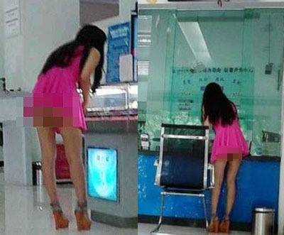 [쿠키뉴스=김민석 기자] 중국의 한 은행에서 20대 여성이 하반신을 노출해 화제를 모으고 있다.