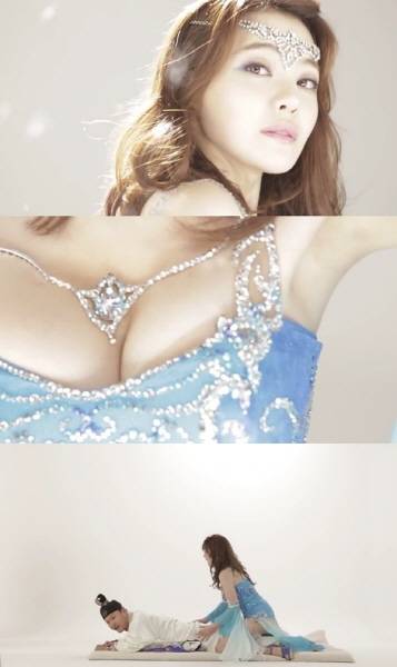 게임 속 인물로 코스프레한 서유리는 시스루 하늘색 원피스를 입고 김민교 앞에 등장해 과감히 엎드린 김민교의 뒤에 올라 앉아 어깨와 허리를 주물렀다. 평범한 마사지 장면이지만 눈에띄는 서유리의 몸매와 능청스러운 연기에 보는 이로 하여금 19금 상상을 하게 한다.