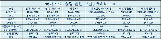‘무너진’ 법인 대상 영업·서비스망 확대도 필수다. 지난해 SM5 LPG 모델 판매량은 6490대다. 쏘나타(LF·YF)의 9분의 1 수준, K5와 비교해도 4분의 1이다. 심지어 7인승이라 더 높은 가격으로 책정된 쉐보레 올란도(7718대)에도 뒤졌다.