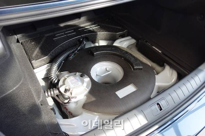 ◇트렁크 속 LPG 탱크 사라져LPG차로서 이 모델의 최대 특징은 도넛 모양의 LPG탱크다. 통상 트렁크 뒤편에 자리 잡은 LPG탱크를 트렁크 밑 보조 타이어 놓는 자리에 쏙 들어갔다. 트렁크 용량이 이전 292리터에서 349리터로 넓어졌다는 게 회사 측 설명이다.