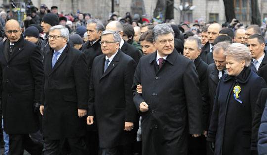 우크라이나는 내전을 거치며 사실상 동서(東西)로 분단된 채 서방과 러시아에 더 깊이 종속되고 있다. 포로셴코 대통령은 21일 기자회견에서 "동부 돈바스 지역에 북대서양조약기구(NATO)군의 주둔을 원한다"고 밝혔다. 외교적 무력감은 한때 핵무기를 보유한 세계 5위권 군사 강대국이었던 우크라이나가 '안일한 평화'를 선택한 대가라는 지적이다. 우크라이나는 1994년 미국과 영국, 러시아로부터 주권과 영토를 보장받는 대가로 핵무기를 포기했다. 우크라이나는 2004년 민주화 시민혁명인 '오렌지 혁명'에 성공했다. 하지만 이후 정계를 장악한 친서방 성향의 율리야 티모셴코 전 총리 등 혁명 주역들은 부패에 연루돼 몰락의 길을 걸었다. 그 결과 다시 친러 세력인 야누코비치가 2010년 권력을 잡는 길을 열어주었다.