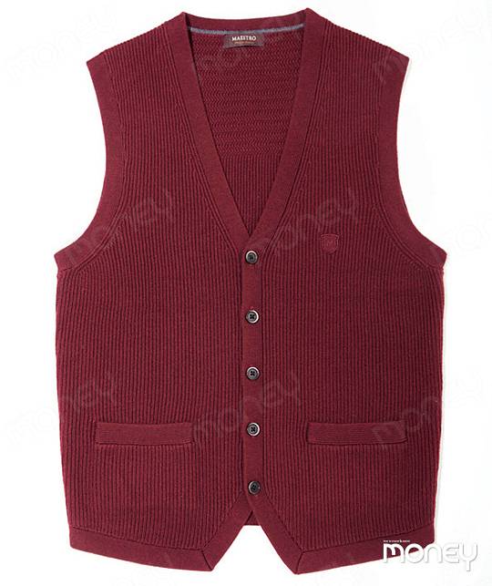 가장 고전적이며 대중적인 니트 베스트는 편안한 캐주얼 룩부터 격식 있는 슈트까지 조화를 이루며 활용도 만점인 아이템이다. 단추형 카디건 스타일이 브이넥 스타일보다 좀 더 갖춰 입은 듯한 느낌을 준다. 21만5000원 마에스트로