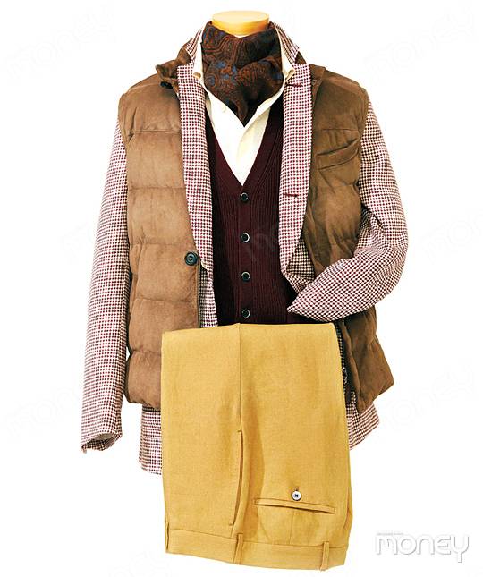 Stlye 1 색의 관계를 잘 이해하고 연출한다면 그만큼 센스 있는 옷차림이 완성된다. 버건디 색 베스트와 하운드투스 패턴 재킷, 톤 다운된 브라운 패딩 베스트와 머플러의 차분함에 밝은 아이보리색 피케 셔츠와 머스터드색 팬츠로 경쾌함을 더했다. 하운드투스 싱글 브레스티드 재킷·피케 셔츠·팬츠 모두 가격 미정 알프레드 던힐 머플러 가격 미정 에스.티.듀퐁 스웨이드 패딩 베스트 145만 원 일레븐티