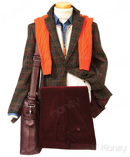 Stlye 2 위트 있는 클래식 룩을 연출하고 싶다면 베스트와 보색 관계인 트위드 재킷과 터틀넥을 선택하는 것이 가장 쉽고도 현명한 선택이다. 터틀넥 42만5000원 타임옴므 블루 셔츠 23만 원 질스튜어트 뉴욕 트위드 재킷 66만 원 해리스 트위드 by 143E. 나폴리 오렌지색 캐시미어 니트 가격 미정 랄프로렌 퍼플라벨 코듀로이 팬츠 68만 원 루비나치 by 143E. 나폴리 가죽 가방 420만 원대 에르메네질도 제냐 꾸띄르 컬렉션 by 스테파노 필라티