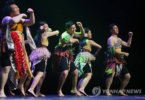 (서울=연합뉴스) 이지은 기자 = 지난 1년간 해외 84개국으로 파견돼 현지 문화를 체험한 국제청소년연합 소속 굿뉴스코 해외봉사단원들이 1일 오후 서울 송파구 올림픽공원 올림픽홀에서 귀국 콘서트를 하기 전 남태평양 댄스를 선보이고 있다. 2015.3.1