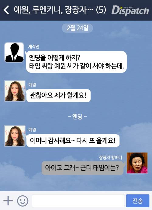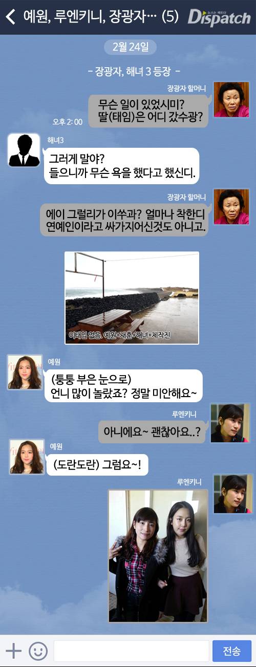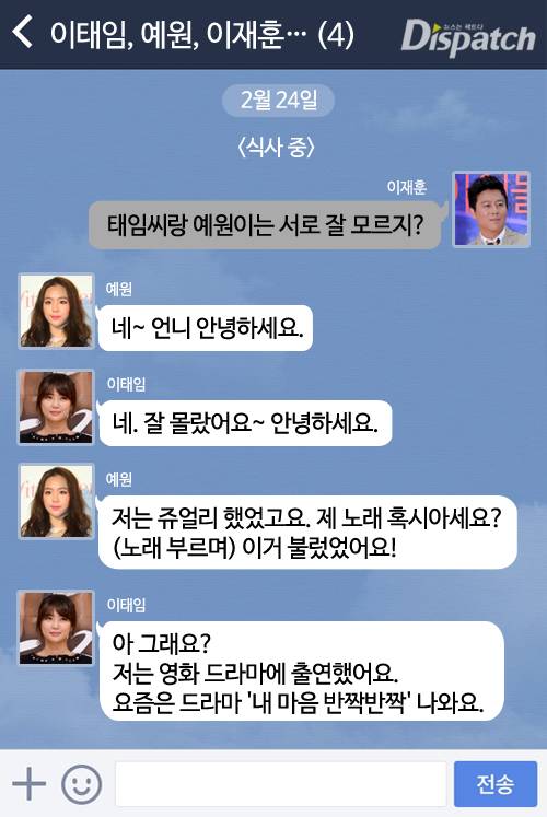 "예원이하고 이태임은 그날 처음 봤나봐. 그래서 예원이는 자기 노래를 불러 줬고, 이태임은 자기가 출연한 영화며 드라마를 말해줬지. 분위기는 좋았어."