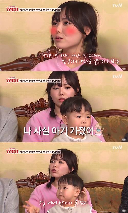 21세라는 어린 나이에 임신하게 된 홍영기는 "그 사실을 알자마자 엄청 울었다. 많은 생각이 들었다. 나도 21세였고, 세용이는 18세라서 너무 슬펐다"며 당시를 떠올렸다.