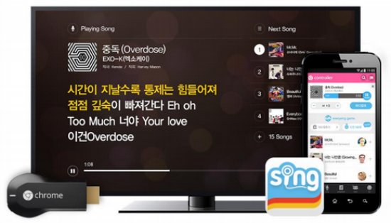 이렇게 활용 범위가 넓어지고 있는 크롬캐스트가 이번에는 SM 엔터테인먼트와 함께 새로운 사용 경험을 하나 더 선보이게 되었습니다. 우리는 노래하는 것을 너무나 좋아합니다. 그래서 노래방을 자주 가서 가족, 친구들과 노래하며 즐거운 시간을 보냅니다. 그래서 집에서 TV를 보면서 노래방에서처럼 노래할 수 있으면 좋겠다는 생각을 하지만 집에 노래방 기기를 들여놓기는 부담스럽지요.