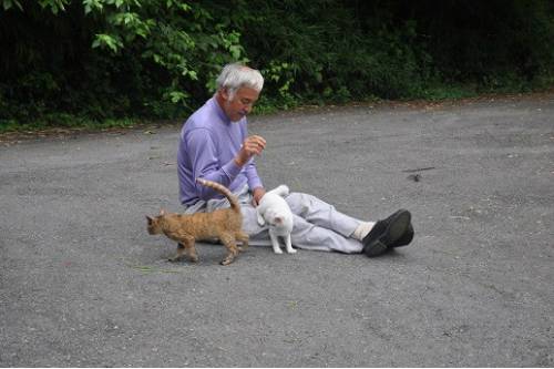 나오토씨는 그곳에서 외부 사람들이 기부해준 음식과 물로 생계를 유지하며 강아지와 고양이, 소, 말, 타조 등 버려진 동물들을 보살피고 있다.