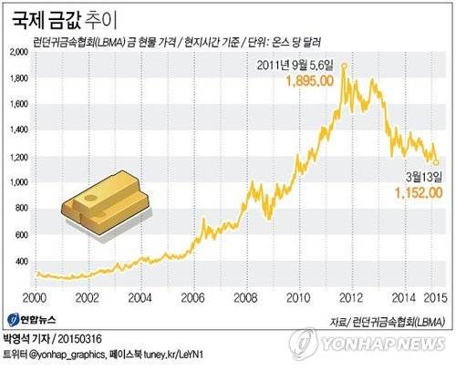 <그래픽> 국제 금값 추이