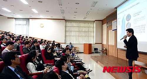 【서울=뉴시스】조성봉 기자 = 16일 오후 서울 성동구 한양대학교 정보통신관 국제회의실에서 열린 '세계 뇌 주간 기념 공개강연회'에서 생체공학과 임창환 교수가 '영화에서 보는 뇌공학'을 주제로 강의를 하고 있다. 2015.03.16.