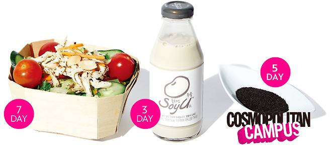 두유 다이어트다른 원 푸드 다이어트보다 접근성도 방법도 간편해 최근 20대 여성들 사이에서 인기 만점인 다이어트. 아침 식사와 저녁 식사 대신 두유를 마시고, 점심엔 탄수화물은 최대한 배제한 채소, 과일, 단백질 위주의 가벼운 식사를 하는 것이다. 중간에 허기를 견디기 힘들다면 간식으로 약간의 견과류를 먹거나 두유를 마시면 된다.REVIEW 3일간 아침과 저녁에 두유를 먹었는데 2kg이 빠졌다. 다양한 다이어트를 해봤지만 두유 다이어트처럼 먹기도 간단하고, 든든한 방법은 없었던 것 같다. 단기간 살을 빼기엔 최고! 정해진 식단대로 먹는 식이요법이 귀찮아 다이어트를 포기한 사람들에게 추천한다. -홍나래(24세, 한성대 의류패션산업학과) ADVICE 다이어트 시 가장 중요한 것은 근육 손실을 피하는 것. 운동과 함께 단백질을 공급해주는 것이 중요한데 이 방법은 매일 단백질을 공급해주기 때문에 효과적이다. 하지만 초저열량식 다이어트법이므로 3일 이상 지속하는 것은 좋지 않다. 장기적으로 다이어트를 할 경우 일주일에 하루 정도 두유 다이어트법을 실천한다면 효과적일 것이다.