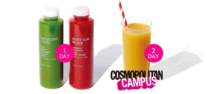 저스트 주스 클렌즈 케일, 셀러리, 비트 등 해독 작용이 뛰어난 채소와 키위, 크랜베리 등 영양이 풍부한 과일을 착즙한 6병의 주스를 순서에 맞춰 하루 3시간 간격으로 먹는 방법이다. 일어나자마자 이지 클렌즈인 ‘그린데이’로 시작해 상큼한 과일 클렌즈인 ‘베리풀C’, 디톡스의 정수인 마스터 클렌즈 ‘스키니 라인’, 뿌리채소 클렌즈인 ‘루트 홀릭’, 녹색 채소로 만든 ‘리바이브’, 자기 전 견과류와 벌꿀이 들어간 이브닝 클렌즈 ‘카쥬밀’을 마시면 끝.REVIEW 불규칙적인 식생활로 살도 찌고 장 트러블도 자주 생겨서 시작! 배고픔은 견딜 만했는데, 몸에 쌓여 있던 독소가 빠지는지 헛구역질이 올라왔다. 그래도 클렌즈 후에 가벼워진 몸과 좋아진 컨디션을 확실하게 느낄 수 있었다. 채소 위주의 식단으로 보식까지 해주니 몸이 건강하게 씻긴 기분! -이은지(24세, 명지대 철학과)ADVICE 밀가루나 초콜릿, 탄산음료와 같은 음식에 중독된 경우 주스 클렌즈 다이어트는 효과적이다. 몸에 해가 되는 중독 음식을 끊고, 단시간에 위의 크기를 줄여주는 효과가 있다. 하지만 3일 이상 장기간 하는 것은 몸에 무리를 줄 수 있으니 삼갈 것, Hollywood 48-Hour미국 할리우드 배우들이 즐겨 하는 다이어트로 알려진 방법. 48시간 동안 물에 1:1 비율로 희석한 전용 주스를 하루 4회 4시간 간격으로 마시는 것이다. 너무 허기가 진다면 약간의 견과류 정도는 먹어도 괜찮다. 음료를 마시는 동안 물은 8잔 이상 충분히 마시도록 한다. 이틀간 커피나 탄산음료 등의 카페인 섭취는 절대로 피할 것. REVIEW 1.2kg 감량 성공! 처음엔 생각보다 주스가 맛있어 살이 빠질까 의심이 들었다. 이틀간 주스만 마셨는데도 비타민 등 영양소가 들어 있어서인지 기운이 없거나 현기증이 생기지 않아 좋았다. 하지만 허기를 이겨내는 것은 견디기 힘들었다. 그래도 감량은 확실해 급하게 다이어트가 필요한 사람에게 추천! -장형윤(23세, 한국외대 영어통번역학부)ADVICE 성공한다면 확실한 감량을 할 수 있지만 요요 현상이 가장 많이 우려되는 다이어트 방법이다. 탄수화물과 각종 비타민이 첨가돼 건강에 좋을 것 같아도 주스만 먹는 것은 허기지기 쉬워 실천이 어렵다. 즉각적으로 몸무게가 줄어드는 효과는 있지만 그만큼 요요가 쉽게 온다는 것을 명심할 것.