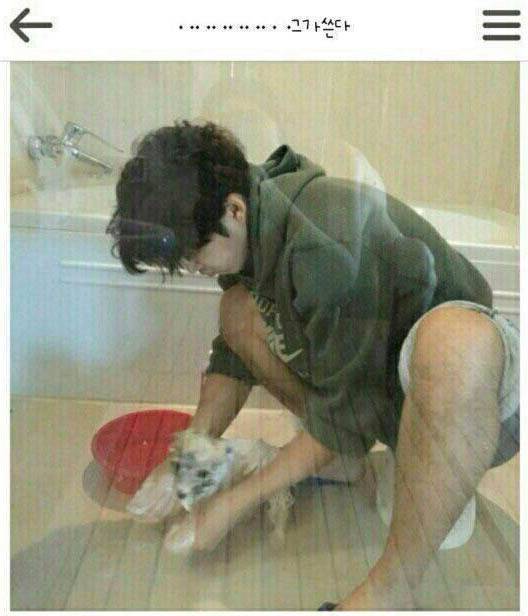 윤계상 강아지 목욕 사진에 웬 '반나체女' 실루엣이.. 이하늬 실수로 올렸나?