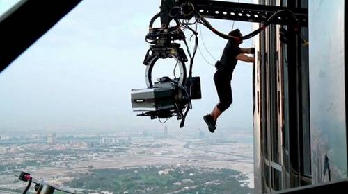 4년 전 '미션 임파서블 : 고스트 프로토콜' 촬영 당시에는 세상에서 제일 높은 건물로 알려진 두바이의 한 빌딩을 줄 하나에 의지한 채 뛰어다니는 그의 모습이 메이킹 필름으로 만들어져 큰 화제를 모았습니다.