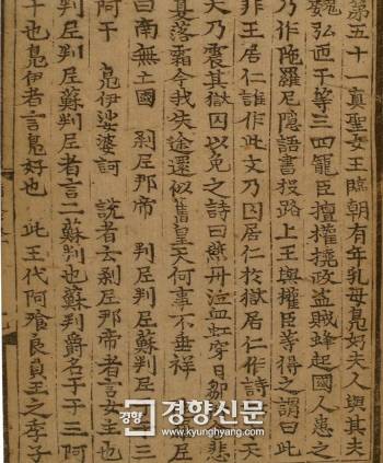 | 진성여왕 때 서라벌 조정의 길목에 등장한 대자보(혹은 전단)의 내용을 소개한 <삼국유사>. '진성여왕과 신라는 망하라!'는 내용을 담고 있다. 신라는 이 때 소판 위홍 등 3~4명의 총신과 여왕의 유모인 부호 부인 등이 정치를 농단하고 있었다. |