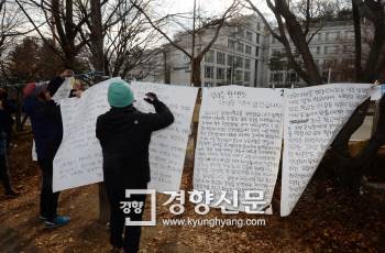 | 지난 2014년 2월 성균관대에서 열린 '대자보 백일장'의 모습. 역사적으로 대자보와 같은 벽서는 언로가 불통일 때, 정치가 어지러울 때 죽음을 무릅 쓴 백성들이 내걸었다. |
