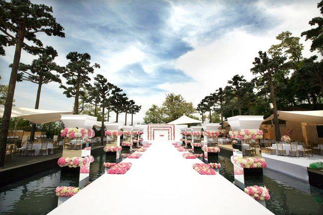 ▲오아시스는 야외수영장 오아시스에서는 이국적인 분위기의 야외 웨딩이 가능하다. 수영장을 가로지르는 버진 로드는 결혼 커플뿐 만 아니라 초대받은 하객들에게도 평생 잊지 못할 로맨틱한 인상을 강하게 남긴다. 결혼식이 끝난 후 자연스럽게 애프터 파티로 이어지는 시간을 가질 수도 있다. 마치 해외 리조트에서 웨딩을 올리는 듯한 분위기를 즐길 수 있다. 뷔페식으로 진행 할 경우 최대 450명 이상의 예식이 가능하다.