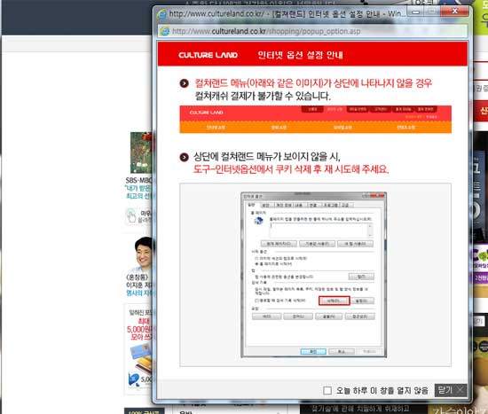 컬쳐랜드는 컬처캐쉬가 결제되지 않을 경우, 인터넷 도구-인터넷옵션에서 쿠키를 삭제하면 된다고 안내했다.