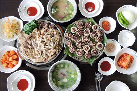 메뉴를 살펴보며 서비스로 주는 선짓국을 맛보는데 손님들이 들어선다. 아직 이른 시간이지만 손님이 줄줄이 자리를 잡는다. 아마도 이 선짓국을 그리워하는 사람들인 모양이다. 그도 그럴 게 선지는 순두부처럼 보드랍고 국물은 개운하기 이를 데 없다. '궁(국)물이 끝내주는 집'이라고 써놓은 자신감이 괜한 것은 아니었다.