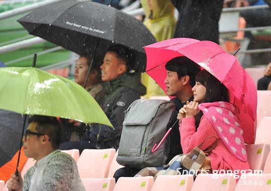 워낙 빅 매치라 많은 팬들이 몰렸는데 아쉽게 비가 괴롭혔다. 어느 정도 예상은 했으나 와도 이렇게 올 줄은 몰랐다. 먹구름 가득했던 하늘은 경기 시작과 함께 빗방울을 뿌리기 시작했고, 시간이 지나면서 앞을 가릴 정도의 엄청난 폭우로 바뀌었다.