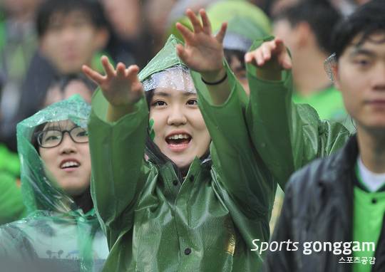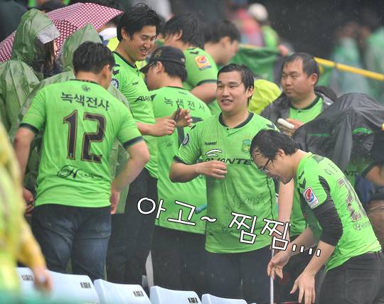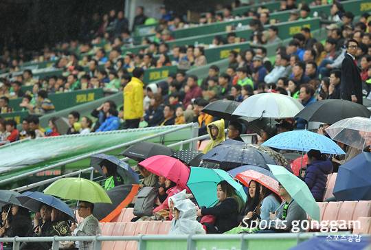 경기장을 찾은 팬들은 비가 쏟아지자 예상했다는 듯 우산을 펼쳐들었고, 몇몇은 비가 들이치지 않는 2층으로 자리를 옮겼다. 사실 불편하지만 모두가 참는 중이었다. 한 번 더 다행스러운 것은 자리를 떠나지 않고 기다린 팬들에게 전북이 끝내 골을 선물했다는 것이다. 포항의 거친 수비에 막혀 좀처럼 기회를 잡지 못했던 전북은 이동국의 교체 투입 이후 활기를 찾았고, 후반 26분 기다리고 기다리던 골을 성공시켰다.
