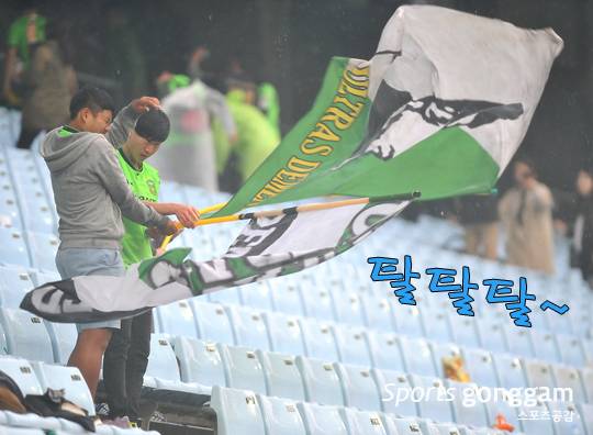 경기가 끝난 후 서포터석에는 선수들과 같이 흠뻑 젖은 팬들이 꽤 많았다. 경기에 빠져 추위도 잊은 채 열정을 불태웠던 것이다. 경기가 끝나자 그제서야 젖은 옷을 털어내며 찜찜함을 느끼는 모습이었다. 그래도 표정은 여전히 밝았다.
