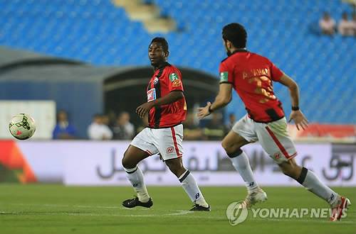 epa04700828 Al-Raed players Jefeen Al-Bishi (L) and Fahad Al-Jahani (R) during the Saudi Professional League soccer match between Al-Raed and Al-Shabab at King Abdullah Sport City Stadium, Buraidah, Saudi Arabia, 11 April 2015. EPA/-