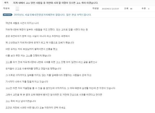 온라인 커뮤니티에 세월호 참사에 대한 정부의 부실 대응을 옹호하는 글을 올리고 여기에 비난 댓글을 다는 회원 77명을 무더기로 고소해 '기획고소'를 제기했다는 의혹을 받은 이모(23)씨가 사과를 받는 조건으로 "고소를 취하하겠다"는 의사를 밝혔다. 피고소인들은 이러한 이씨를 상대로 역고소를 제기할 예정인 것으로 알려졌다.