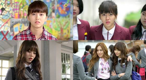 27일 오후 방송된 KBS 2TV 월화드라마 '후아유-학교2015'(극본 김민정 김현정·연출 백상훈 김성윤·제작 (유)학교2015 문화산업전문회사 FNC엔터테인먼트) 1회에서는 통영 누리여고 2학년 이은비(김소현 분)와 세강고등학교 2학년 고은별(김소현 분)의 학교생활 모습이 그려졌다.