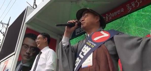 이때 스님 복장을 한 변희재 후보 측 선거운동원은 "빨갱이를 죽여라. 관악을 유권자 여러분 빨갱이를 죽여야 됩니다. 대한민국은 빨갱이 나라가 아닙니다"라고 외쳤다.
