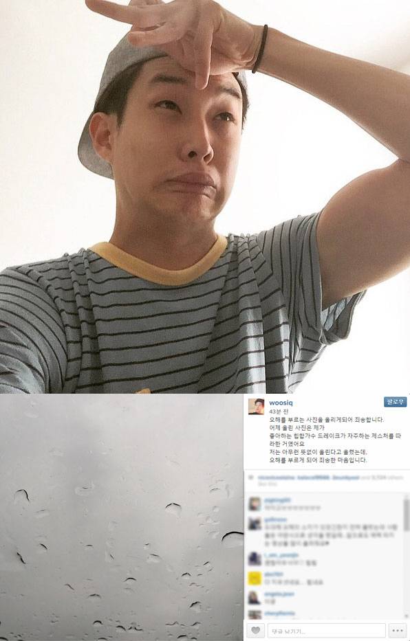 최우식은 “어제 올린 사진은 제가 좋아하는 힙합가수 드레이크가 자주하는 제스처를 따라한 거였어요. 저는 아무런 뜻없이 올린다고 올렸는데, 오해를 부르게 되어 죄송한 마음입니다”라고 전했다.