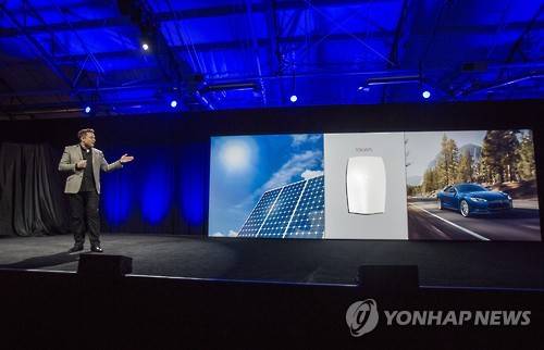 (샌프란시스코=연합뉴스) 임화섭 특파원 = 전기자동차 업체 테슬라가 가정용 배터리 '파워월'을 올해 여름에 시판키로 했다.