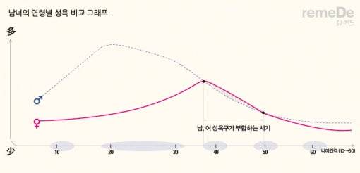[라메드] 남녀별 성욕비교 그래프 "여자는 38세에 성욕이 최고조"