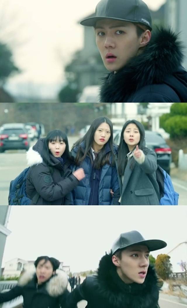5월 7일 방송된 네이버 TV캐스트 웹드라마 '우리 옆집에 엑소가 산다' 10회(극본 신연주, 황지언/연출 이권)에서 세훈(세훈 분)은 사생팬 등장에 줄행랑을 쳤다.