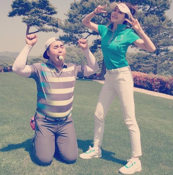 공개된 사진 속 박한별은 골프웨어를 갖춰 입은 채 양손으로 브이자를 그리며 환한 미소를 짓고 있다. 반면 김지호는 무릎을 꿇은 채 입에 골프공을 물고 있어 웃음을 자아낸다.