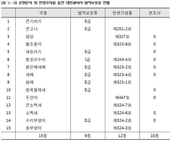 | ▲ 대전광역시 자연환경조사 결과-보호종 현황 자연환경조사 결과 |