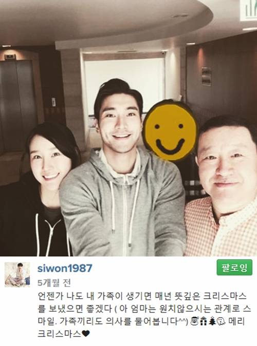 앞서 최시원은 지난 2014년 12월 24일 "언젠가 나도 내 가족이 생기면 매년 뜻 깊은 크리스마스를 보냈으면 좋겠다. (아 엄마는 원치 않으시는 관계로 스마일. 가족끼리도 의사를 물어봅니다) 메리크리스마스"라는 글과 함께 가족사진을 공개했다.