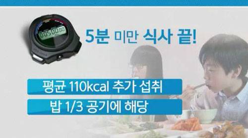식사 얼마나 빨리 드시나요? 저도 식사속도가 굉장히 빠른 편인데요. 학교 다닐 때부터 빨리 도시락 먹고 놀 수 있으니까, 그때부터 먹는 속도가 빨라진 것 같습니다. 지금도 마찬가집니다. 밥 한 공기, 보통 10숟가락이면 다 먹는데요. 정말 5분도 채 안 걸려 식사를 마치고, 동료들 식사 끝나기를 멀뚱멀뚱 기다립니다. 이렇게 오늘 제 이야기가 긴 이유는 비단 저뿐만 아니라 우리나라 사람들 식사속도가 굉장히 빠르다는 겁니다.