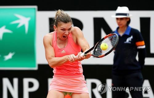 epa04749528 Simona Halep of Romania in action against her compatriot Alexandra Dulgheru during their quarter final match of the Italian Open tennis tournament at the Foro Italico in Rome, Italy, 15 May 2015. EPA/ALESSANDRO DI MEO