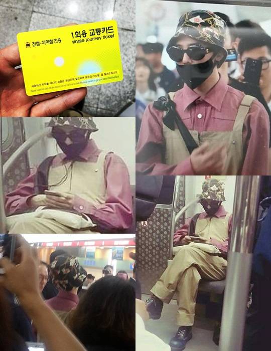 이어 각종 온라인커뮤니티와 SNS상에는 지하철서 지드래곤을 목격했다는 사진이 속속 올라왔다. 사진 속 지드래곤은 분홍색 셔츠에 갈색 멜빵바지를 매치, 아무나 쉽게 소화할 수 없는 패션니스타다운 면모를 뽐냈다.