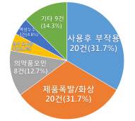 한편 국가기술표준원은 시중에 판매되고 있는 32개 전자담배의 배터리 및 충전기 안전성조사를 실시한 결과 약 30%(10개) 제품이 감전 위험이 있고, 주요 부품이 임의로 변경돼 리콜 명령을 내렸다. 실제 전자담배 혹은 배터리가 폭발해 얼굴 혹은 신체에 2도 화상을 입은 경우도 있었다.