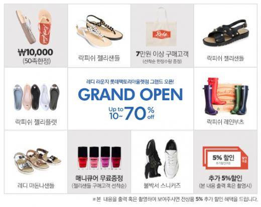 이번에 오픈하는 '레디 라운지 롯데팩토리아울렛점'은 백화점 슈즈 브랜드인 락피쉬와 주주, 쉬피 그리고 단독 브랜드인 레디 등을 만나볼 수 있는 여성 슈즈 전문 편집샵으로 스니커즈, 샌들, 레인부츠, 젤리슈즈, 모카신, 겨울 부츠 등 다양한 상품을 한 번에 쇼핑할 수 있는 공간이다.